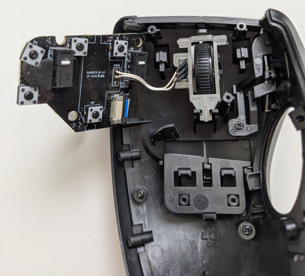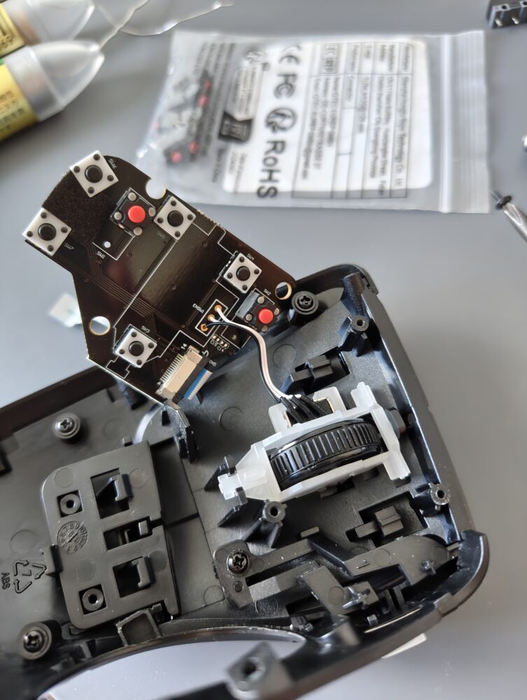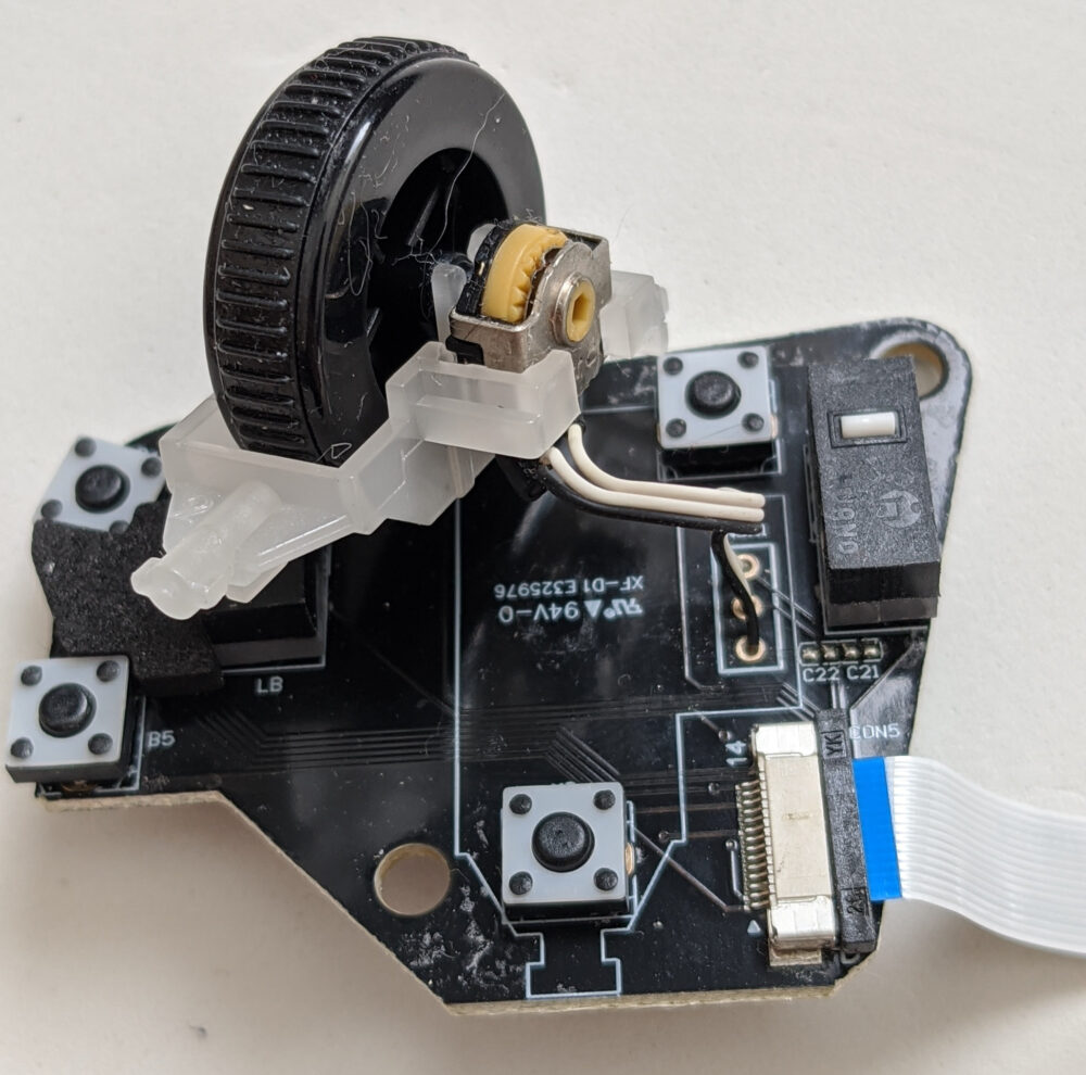左右クリックスイッチを交換した個体とは別のものなので、ホイールパーツの色が異なっています