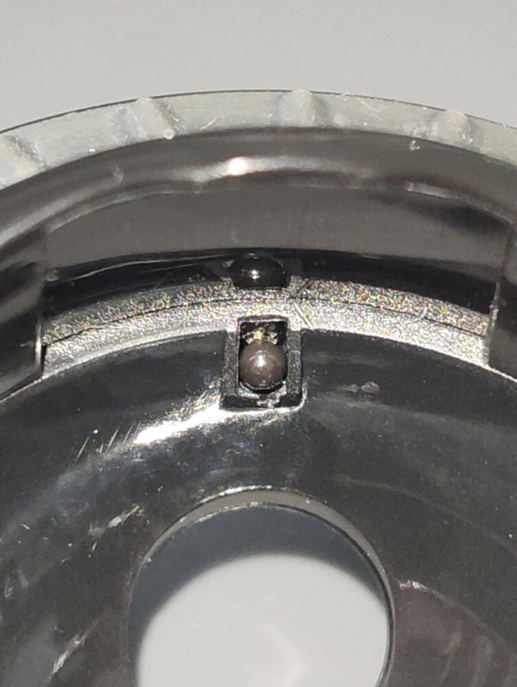 ここでは支持球を交換していきます。使われている支持球の直径は2.0mmです。色から察するに材質はルビーです。