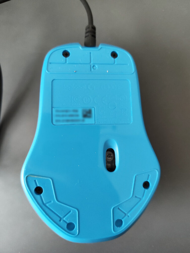 マウス裏面のソールを剥がして、下に隠れているネジを+00ドライバーで外します。
